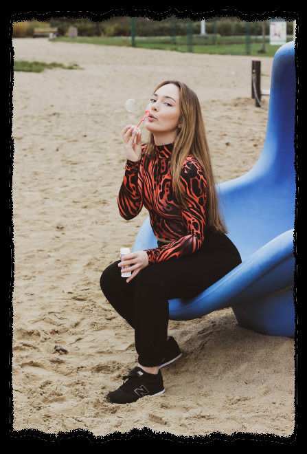 im Käfig aus Gummi miteinander eingesperrt, strahlen und tanzen.